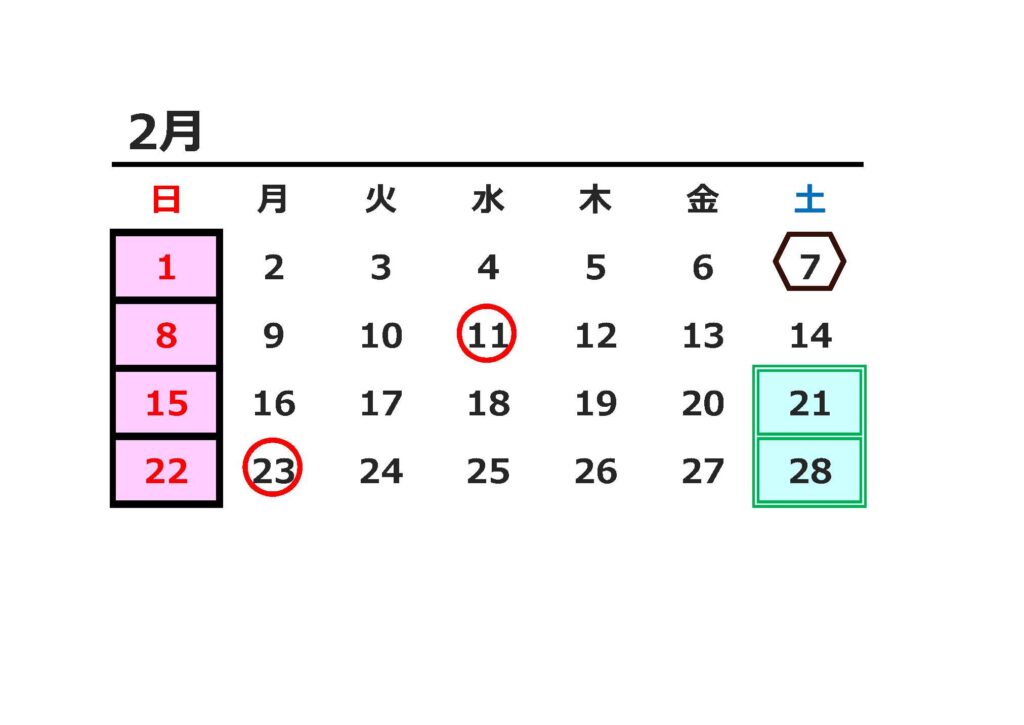 7日(土)、11日(水)、21日(土)、23日(月)、28日(土)、各日曜日